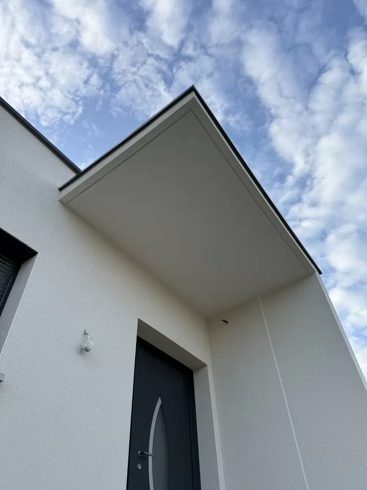 Votre façadier à Andrézieux-Bouthéon a réalisé sur cette villa récente un enduit finition grattée fin dans une teinte blanc naturel de chez Parexlanko.